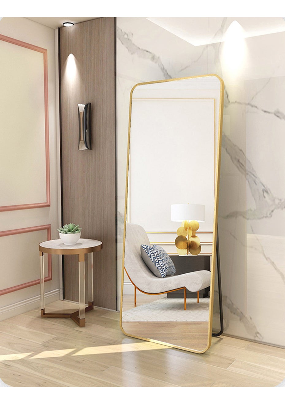 PREMIUM full length mirror's frame is made of Aluminum Alloy material. The elegant and simple style will perfectly match your furniture.