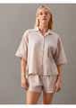 Calvin Klein - Womens Cotton Poplin Cotton Poplin Ss Shirt - Steady Stripe/Grey