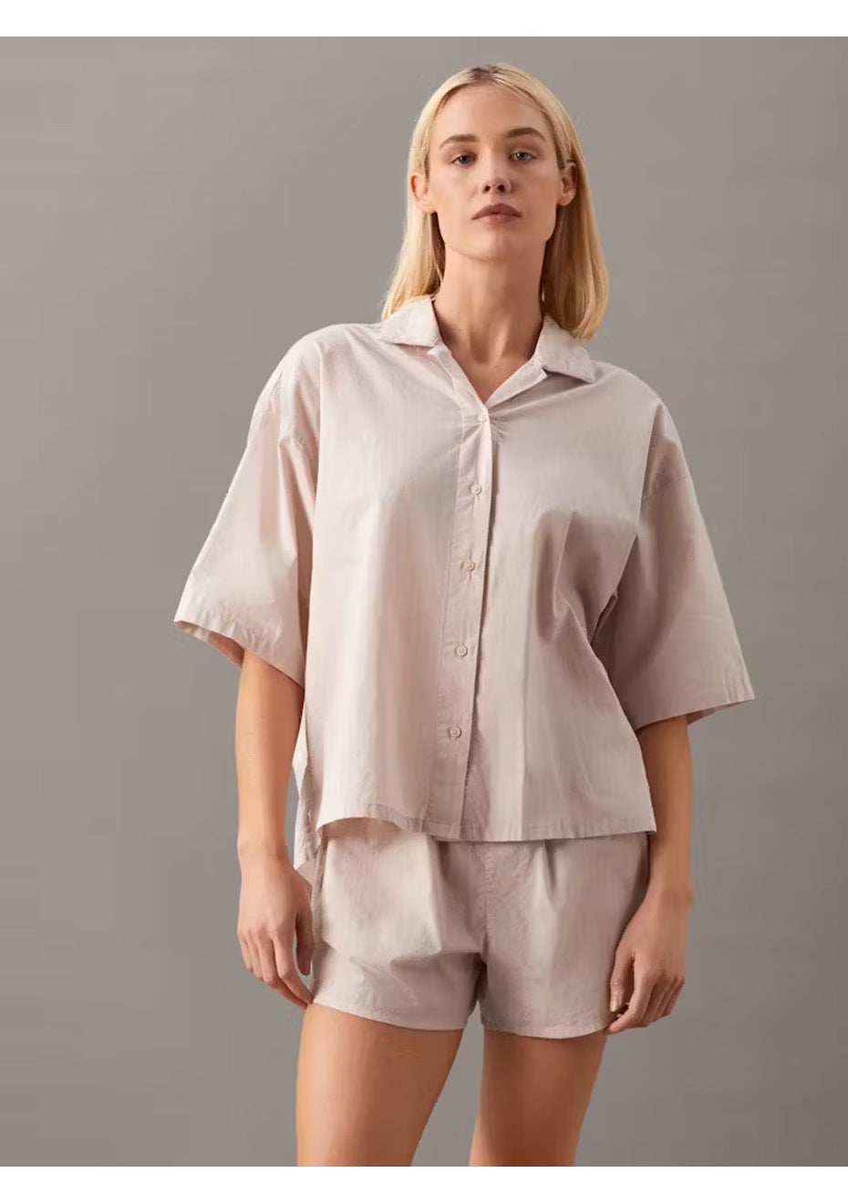 Calvin Klein - Womens Cotton Poplin Cotton Poplin Ss Shirt - Steady Stripe/Grey