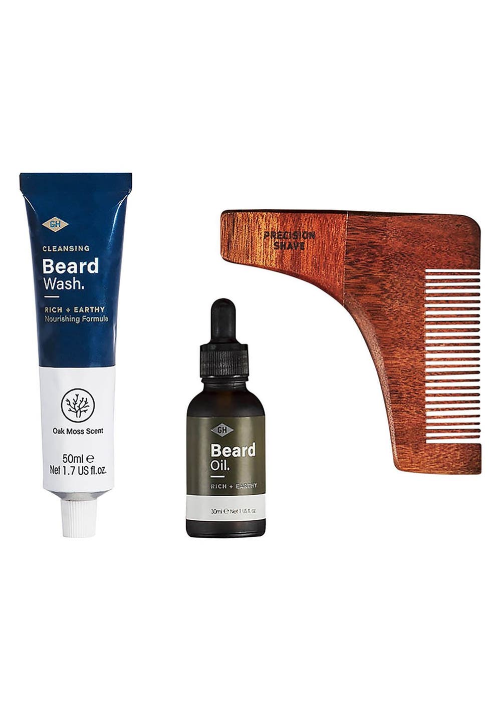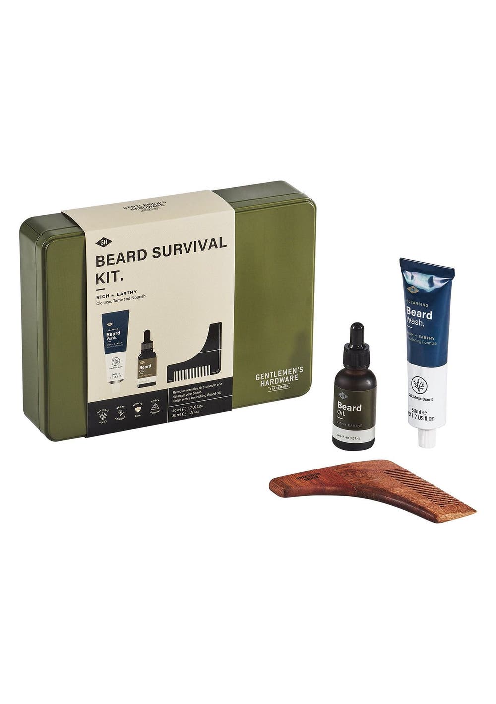Spoil your scruff with the Beard Survival Kit from GentlemenOs Hardware. Featuring a Beard Wash and Beard Oil, both scented in rich Oak Moss, this compact kit has everything you need to tackle any tangles, including a Wooden Comb. All products are vegan friendly and fit neatly in the included reusable tin!