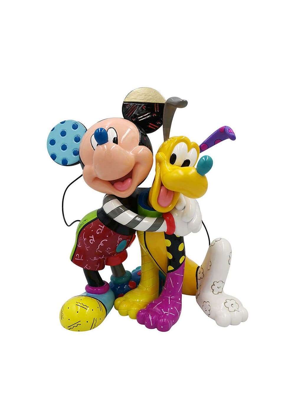 Celebrate Mickey and Pluto's everlasting friendship with this spectacular 90th Anniversary piece. The artist, Romero Britto has used bright colours and bold patterns to capture the heart-warming bond between these two iconic characters. Measurement: 21cm Material: Resin Sculptured by Romero Britto