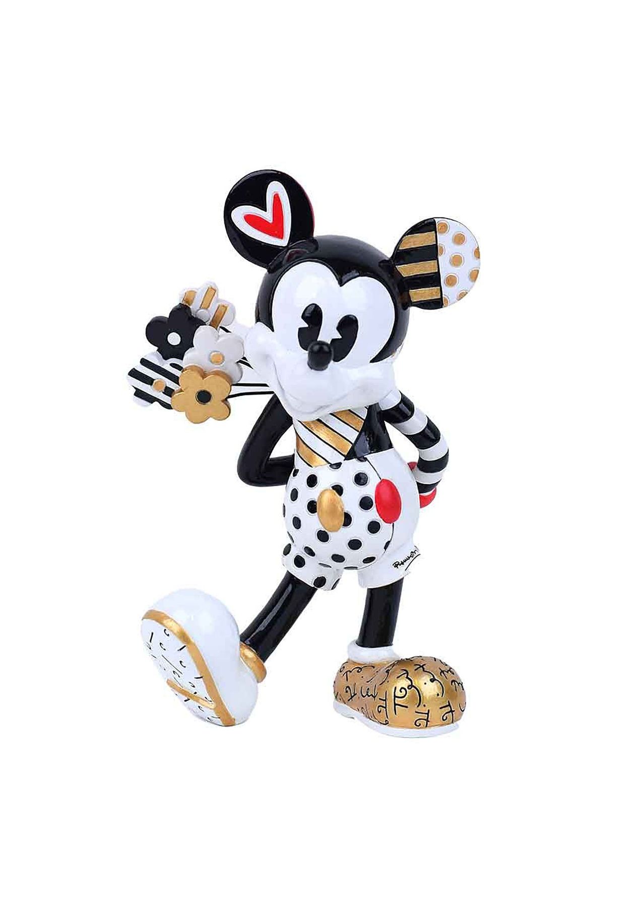 Mickey Mouse has been given the midas touch in this stunning 20cm large figurine designed by Romero Britto. Standing in with his hands behind is back, holding a bunch of blooming flowers,, this stunning piece showcases MickeyOs loveable personaility, and he even has a red heart icon is his ear. With strong contrasting accents in black, white, red and shiny gold, this retro Mickey Mouse design is a must for Disney and Britto enthusiasts.