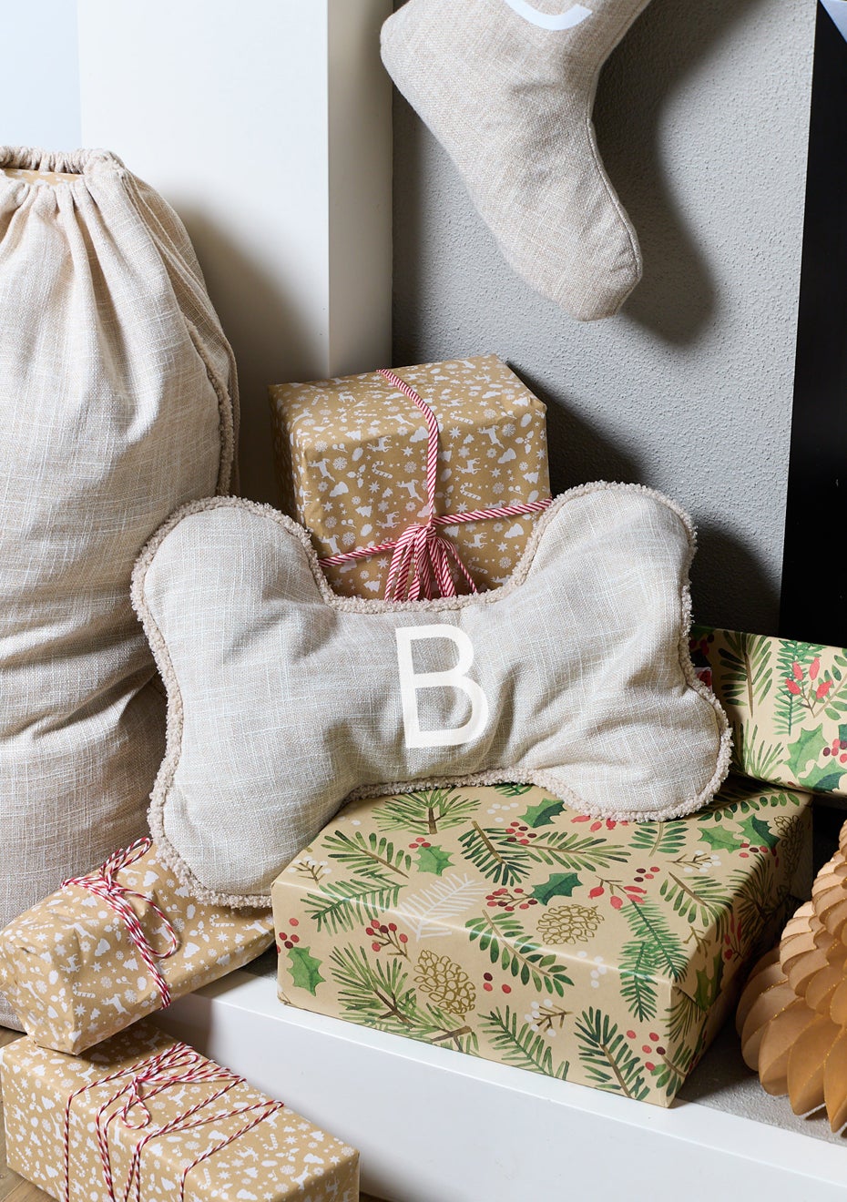 George Collective - Bone Stocking (with A-Z Iron On) - Natural Linen Look/Natural TeddyCLEARANCE