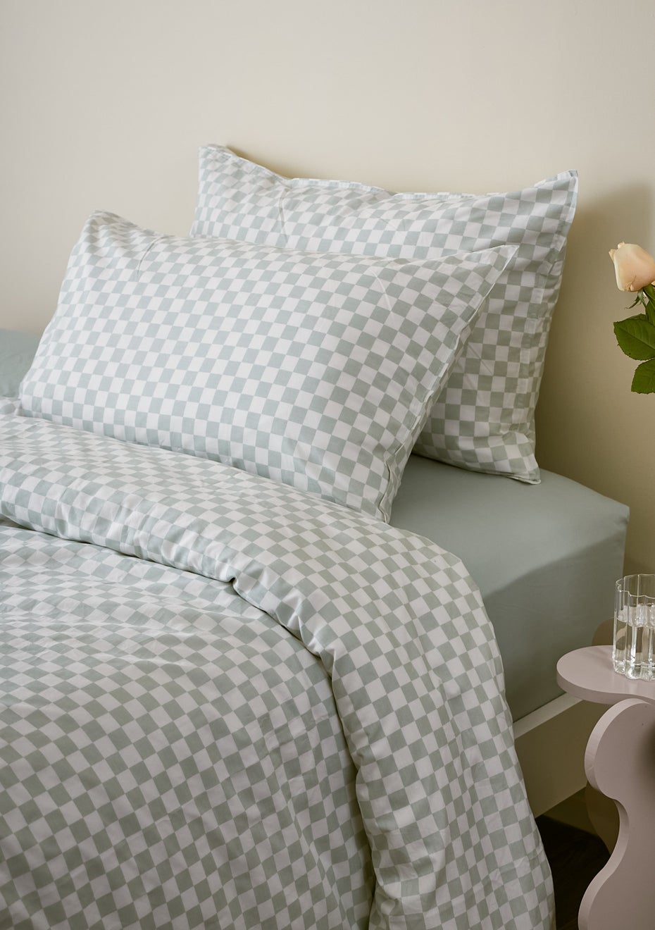 George Collective - 100% Stonewashed Cotton Duvet Cover Set - Super King - Desert Sage Checker