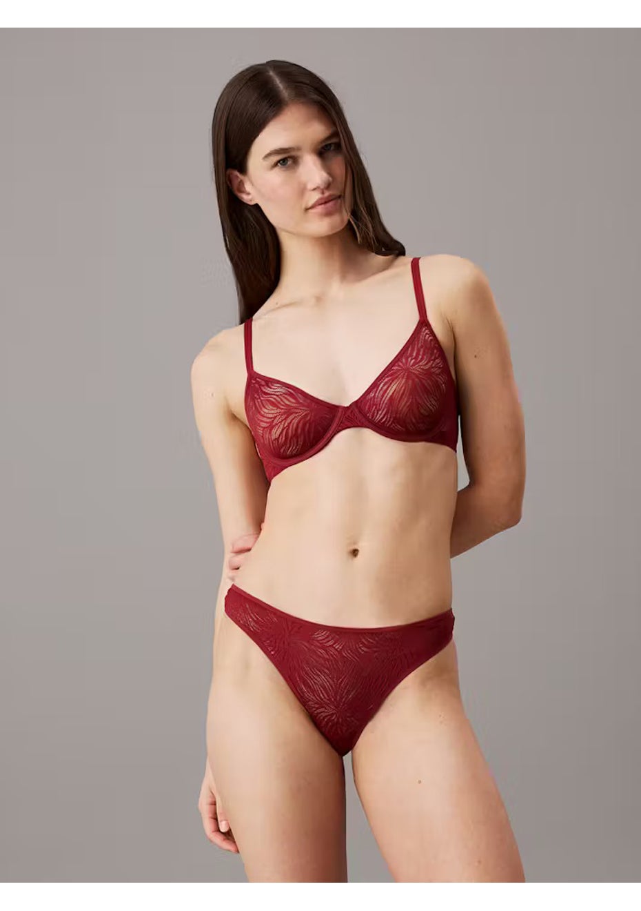 Calvin Klein - Womens Sheer Marquisette With Lace Thong - Syrah