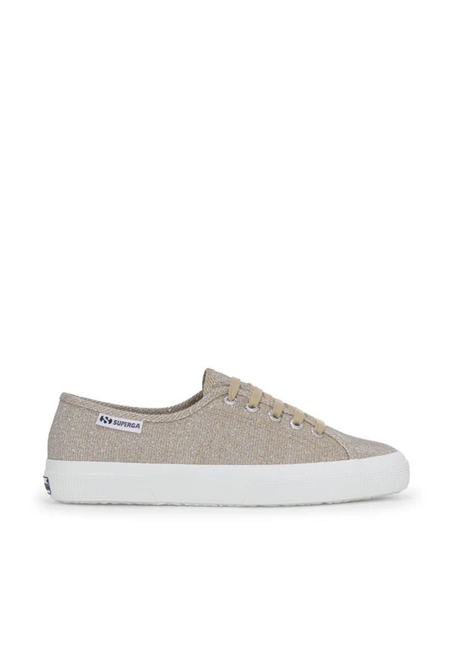 With its high-comfort fit and dainty silhouette, Superga 3750 embraces the brand's lighthearted attitude while keeping its most iconic hallmarks. This Superga sneaker features a micro-ribbed jersey lamé upper, a flexible vulcanised rubber sole and a removable comfort insole that offers a supportive cushioning fit. The contrasting-coloured jacquard logo tag on the side adds the finishing touch to this style. Low cut design Micro-ribbed jersey lamé upper Cotton lining Dainty, lightweight silhouette Removable comfort insole Blue jacquard logo tag on the side Branded insole and heel counter Logo-engraved aluminium eyelets Cotton laces Vulcanized natural rubber sole