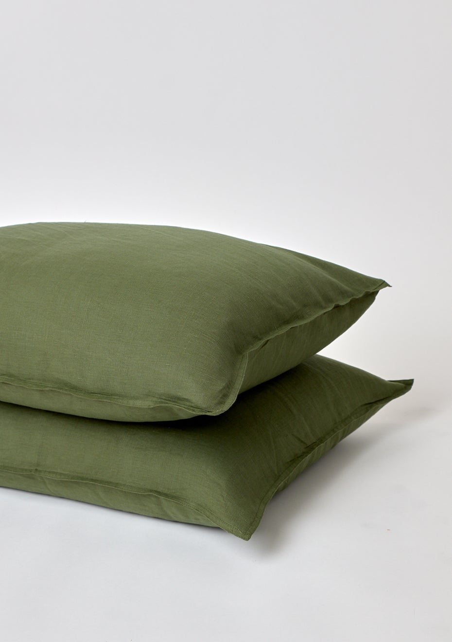 George Collective - 100% European Flax Linen Pillowcase Pair - Moss