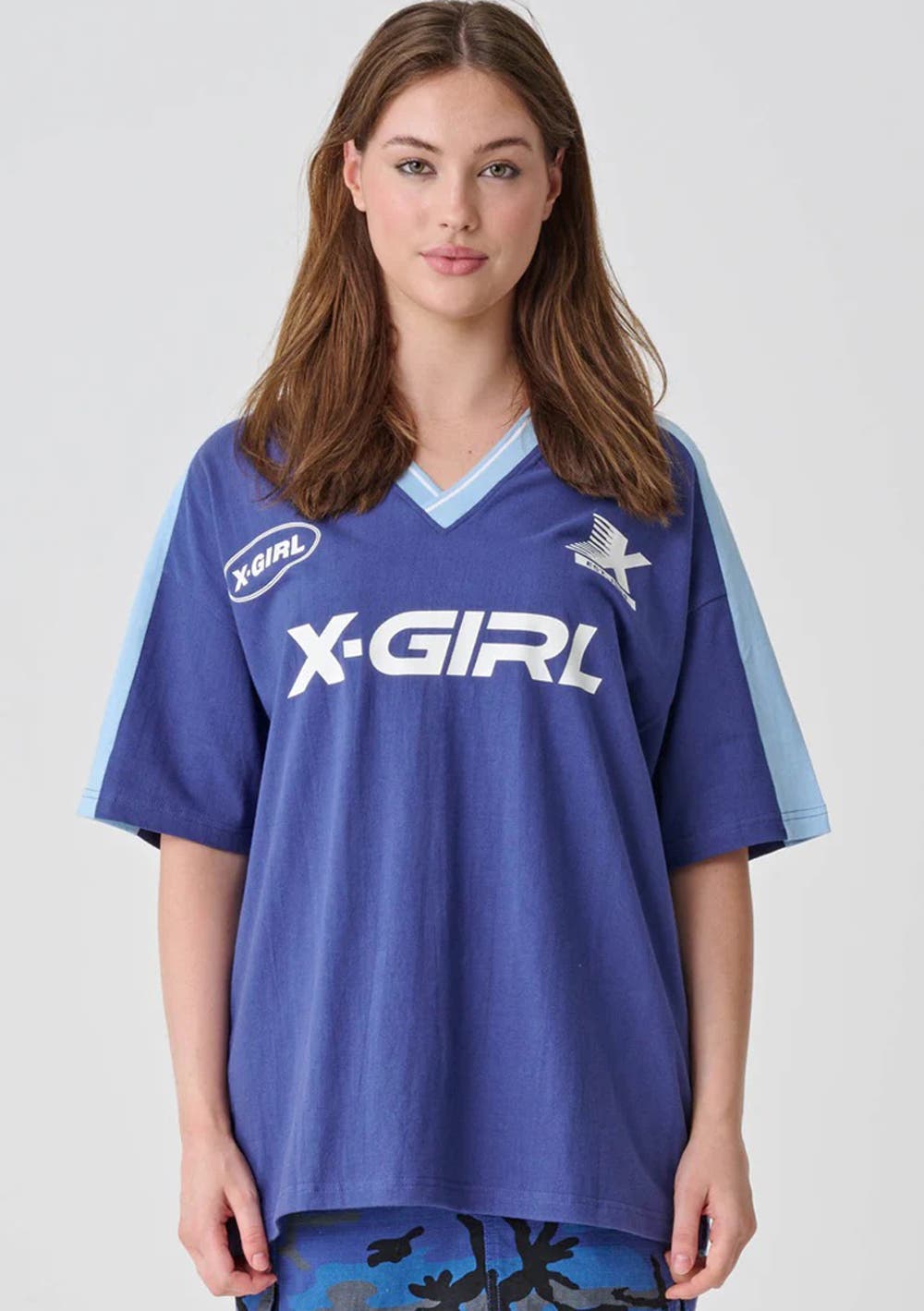 Xgirl - Womens Sport V Neck Relaxed Tee - Navy