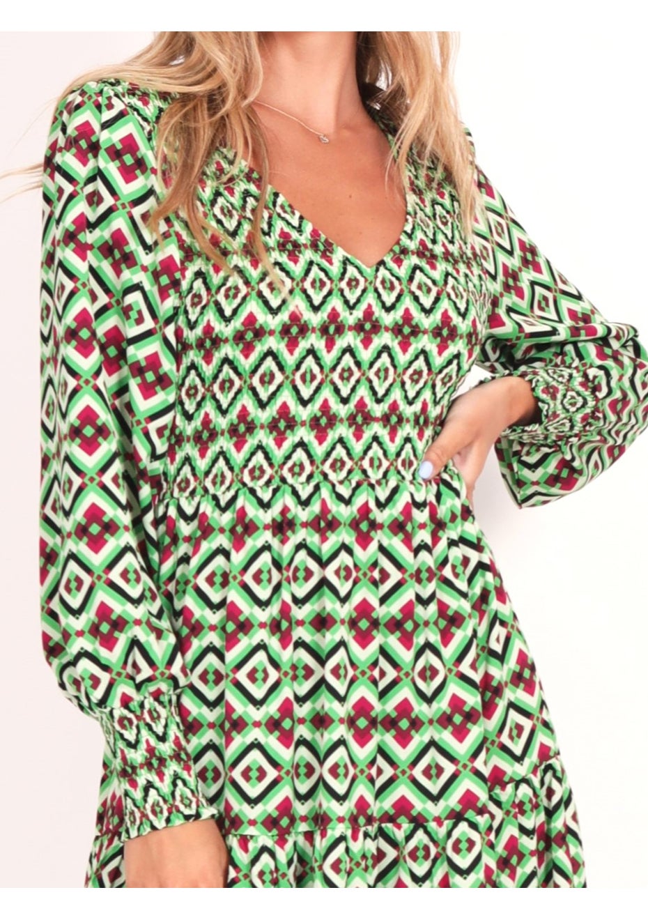 Leoni - Pheonix V Neck Dress - Retro Green