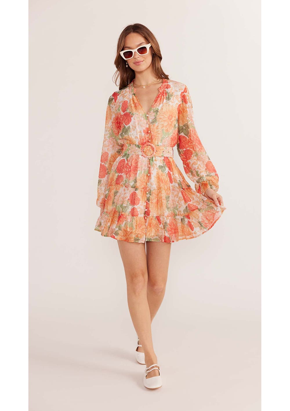 MINKPINK - Aida Long Sleeve Mini Dress - Apricot Floral