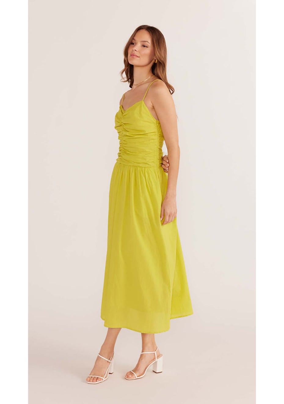 MINKPINK - Mariposa Ruched Midi Dress - Charteuse