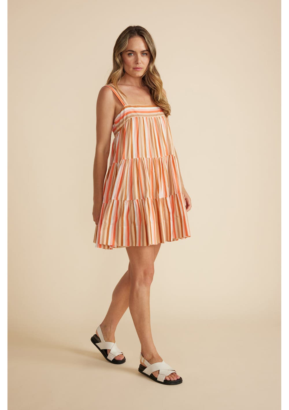 In a soft babydoll silhouette, the Edie Tiered Mini Dress is an easy throw-on-and-go style.