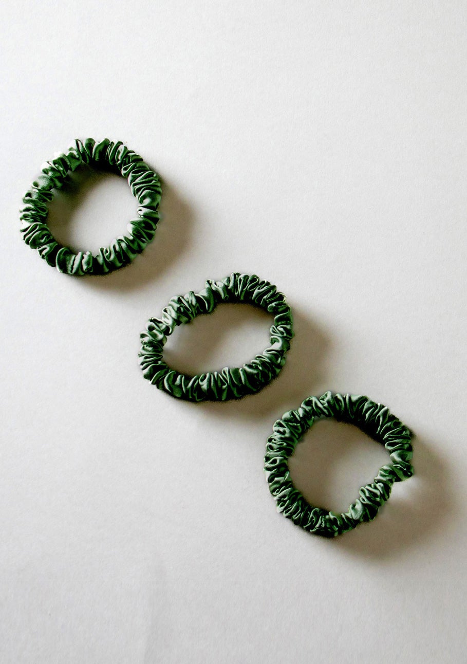 Slumber - 100% Silk Skinny Scrunchie 3pack - Forest