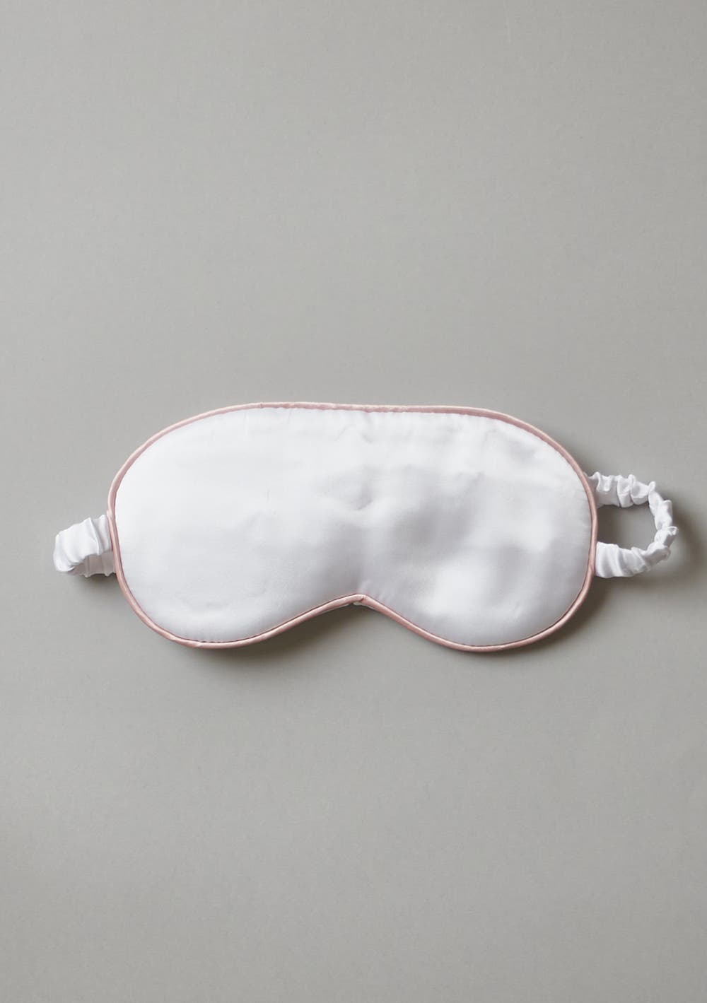 Slumber - 100% Silk Eye Mask - White/Blush piping