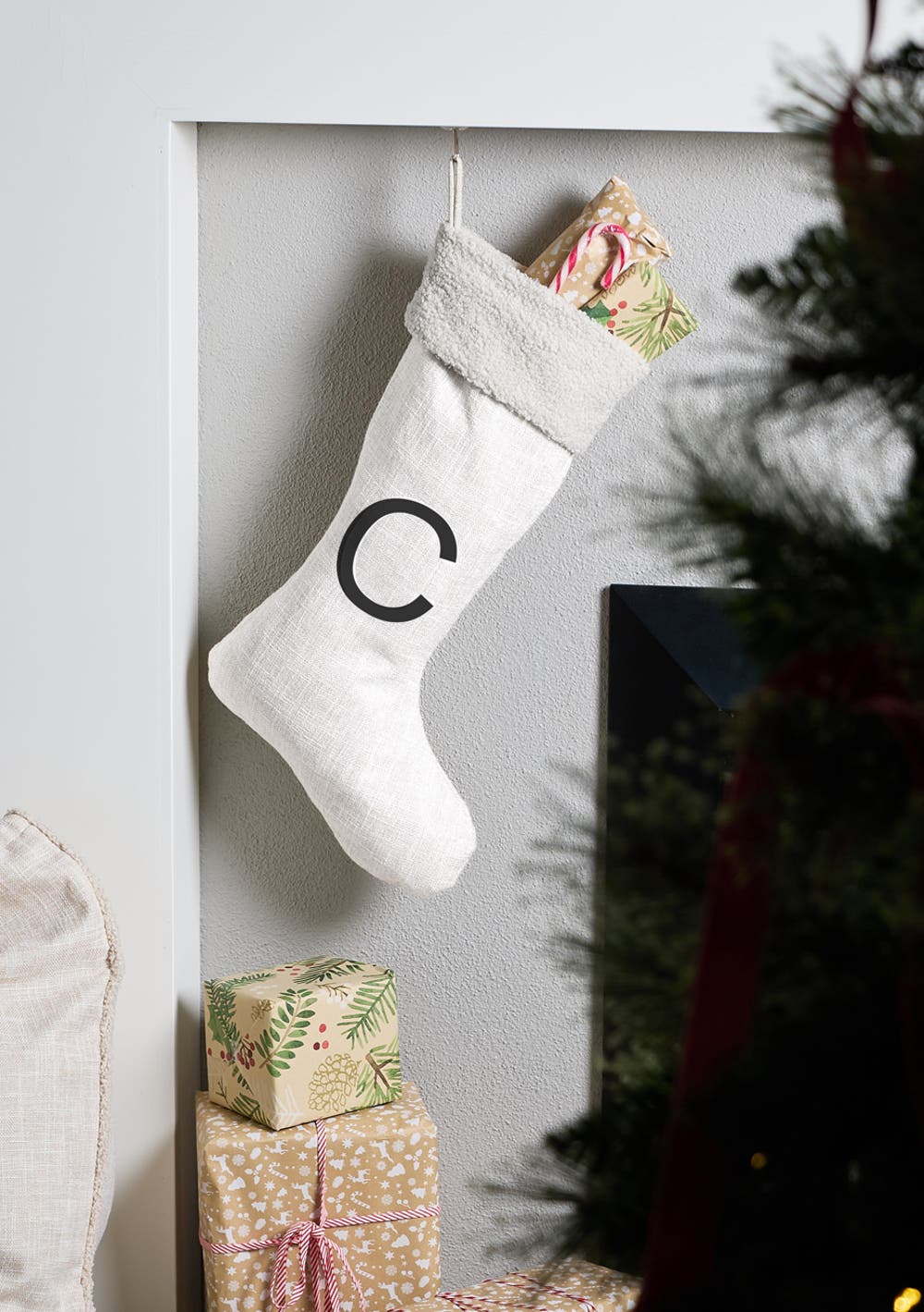 George Collective - Stocking (with A-Z Iron On) - White Linen Look/White TeddyCLEARANCE