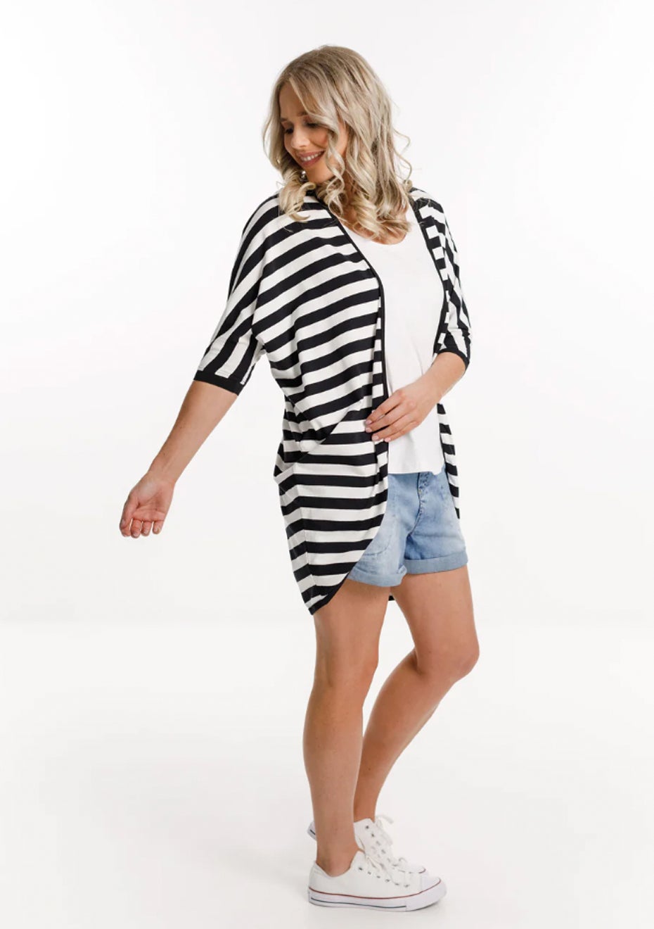 Homelee - Summer Cardi - Black And White Stripes With Black