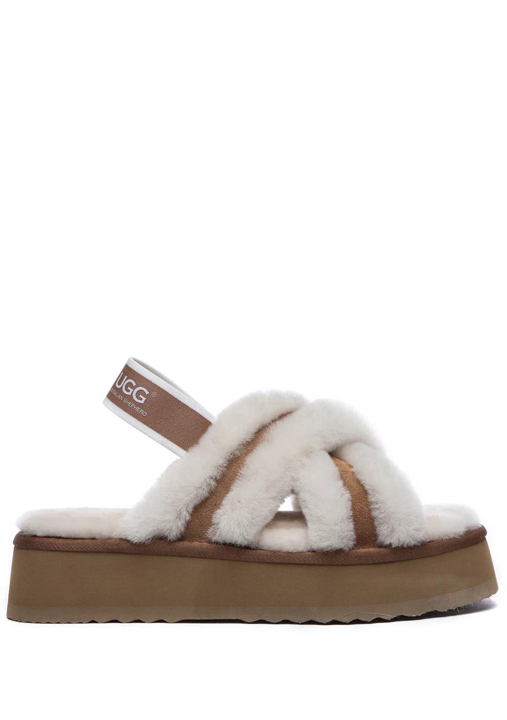 Ugg Australian Shepherd - Women Crossover Platform Fluffy Slides Aditi - Chestnut