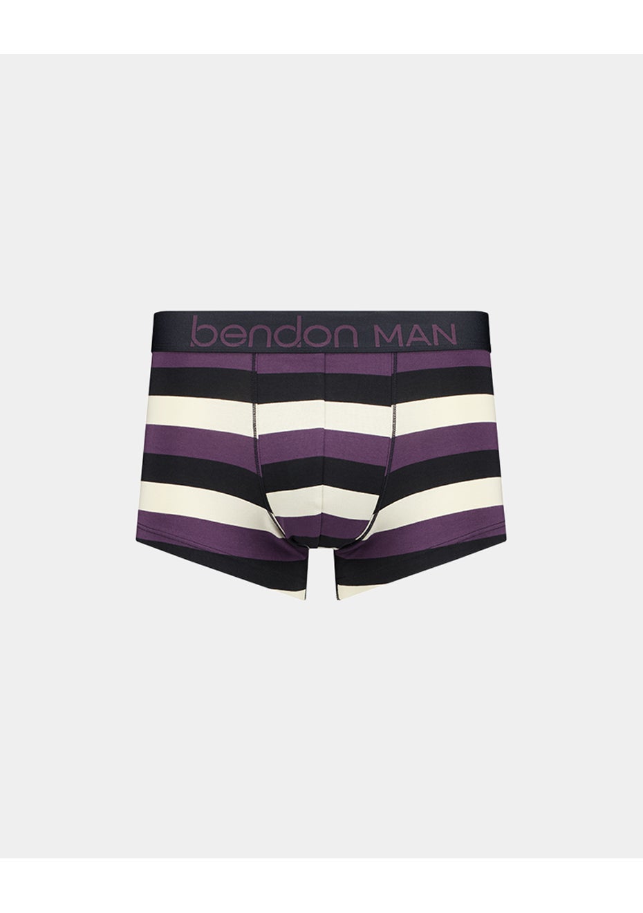 Bendon Man - Rugby Stripe Mens Trunk - Black/Plum Perfect/Oatmeal