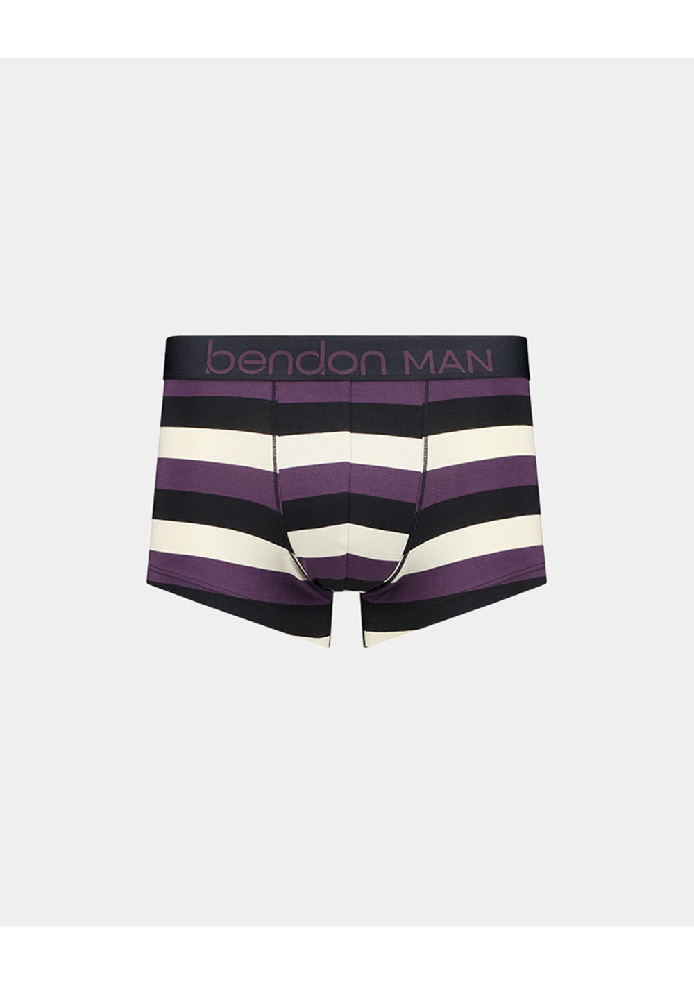 Bendon Man - Rugby Stripe Mens Trunk - Black/Plum Perfect/Oatmeal