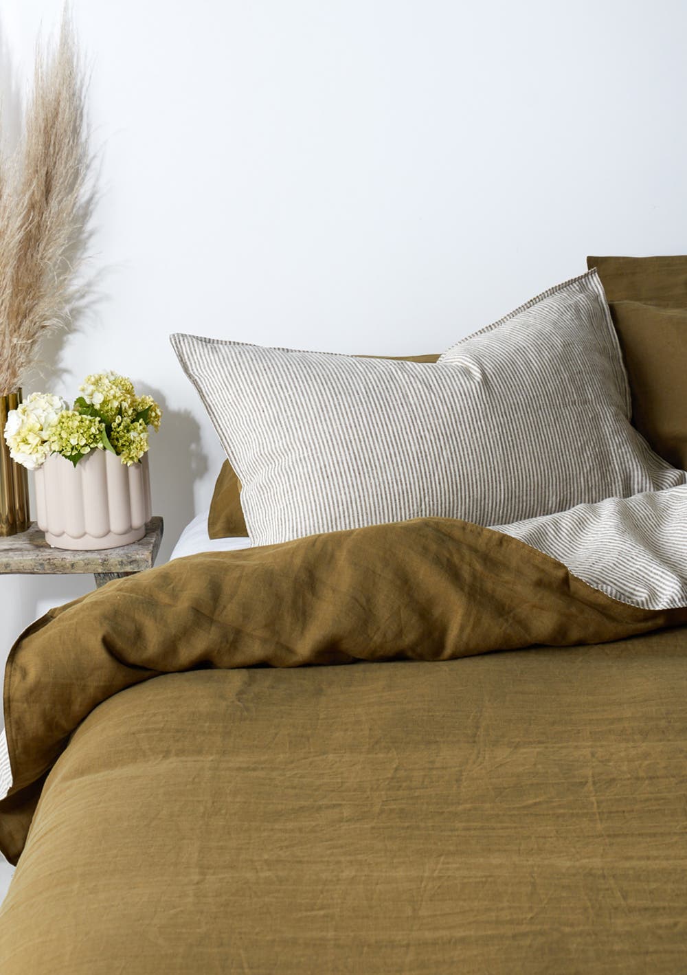 George Collective - 100% European Flax Linen Duvet Cover Set - Queen - Olive Stripe/Olive