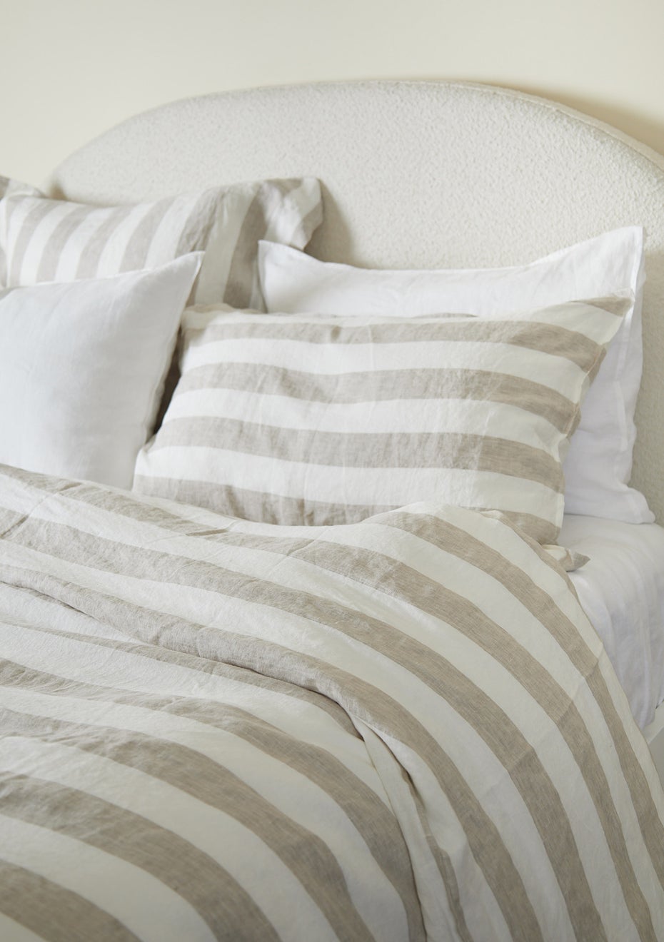 George Collective - 100% European Flax Linen Duvet Cover Set - Super King - Natural Wide Stripe