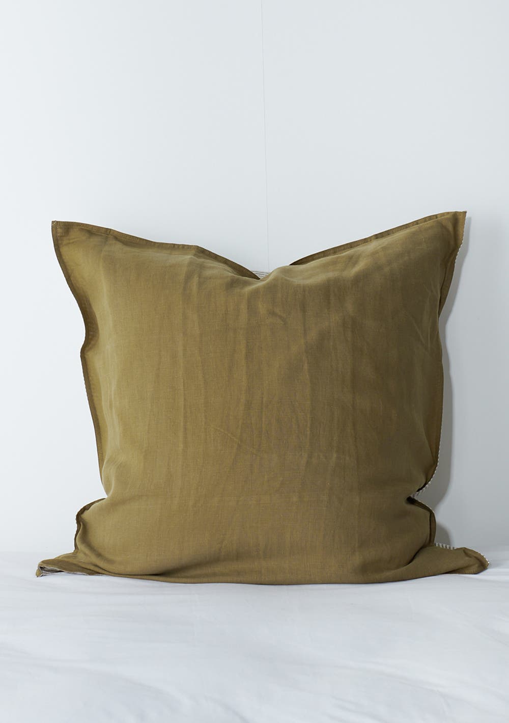 George Collective - 100% European Flax Linen Euro Pillowcase - Olive Stripe/Olive