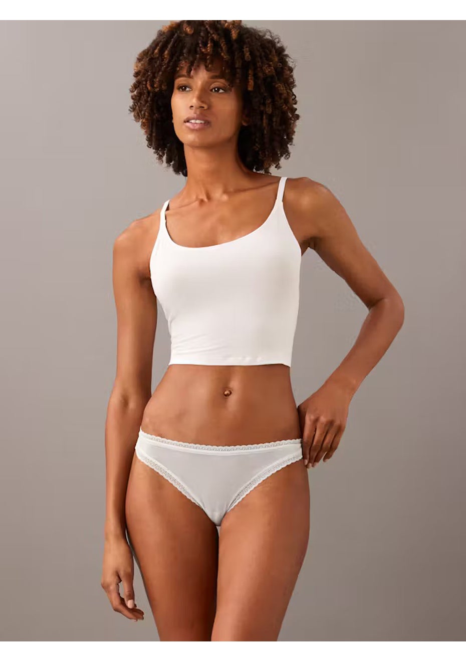 BOTTOMS UP: A range of panties with a smooth, clean look and a subtle touch of lace. medium rise waist,scalloped lace trims,Calvin Klein slim elastic waistband