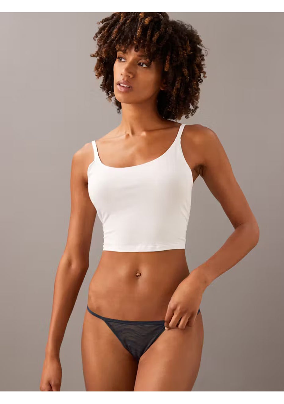 Elegant lace and smooth microfibre combine in this brief, cut with a string thong silhouette. sheer stretch lace,medium rise waist,string sides and back ,Calvin Klein signature elastic trims