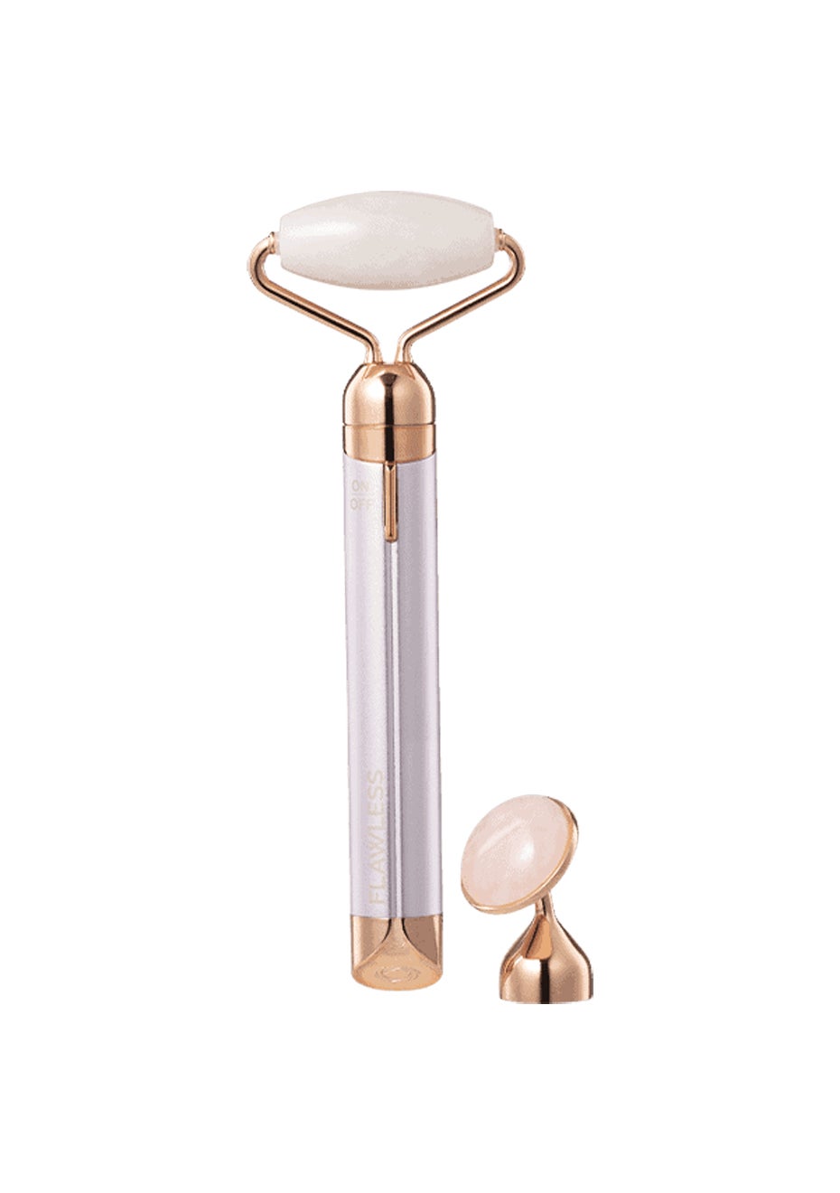 Finishing Touch Flawless Contour is a vibrating Rose Quartz facial roller and massager designed to help improve skin tone and reduce the appearance of fine lines.