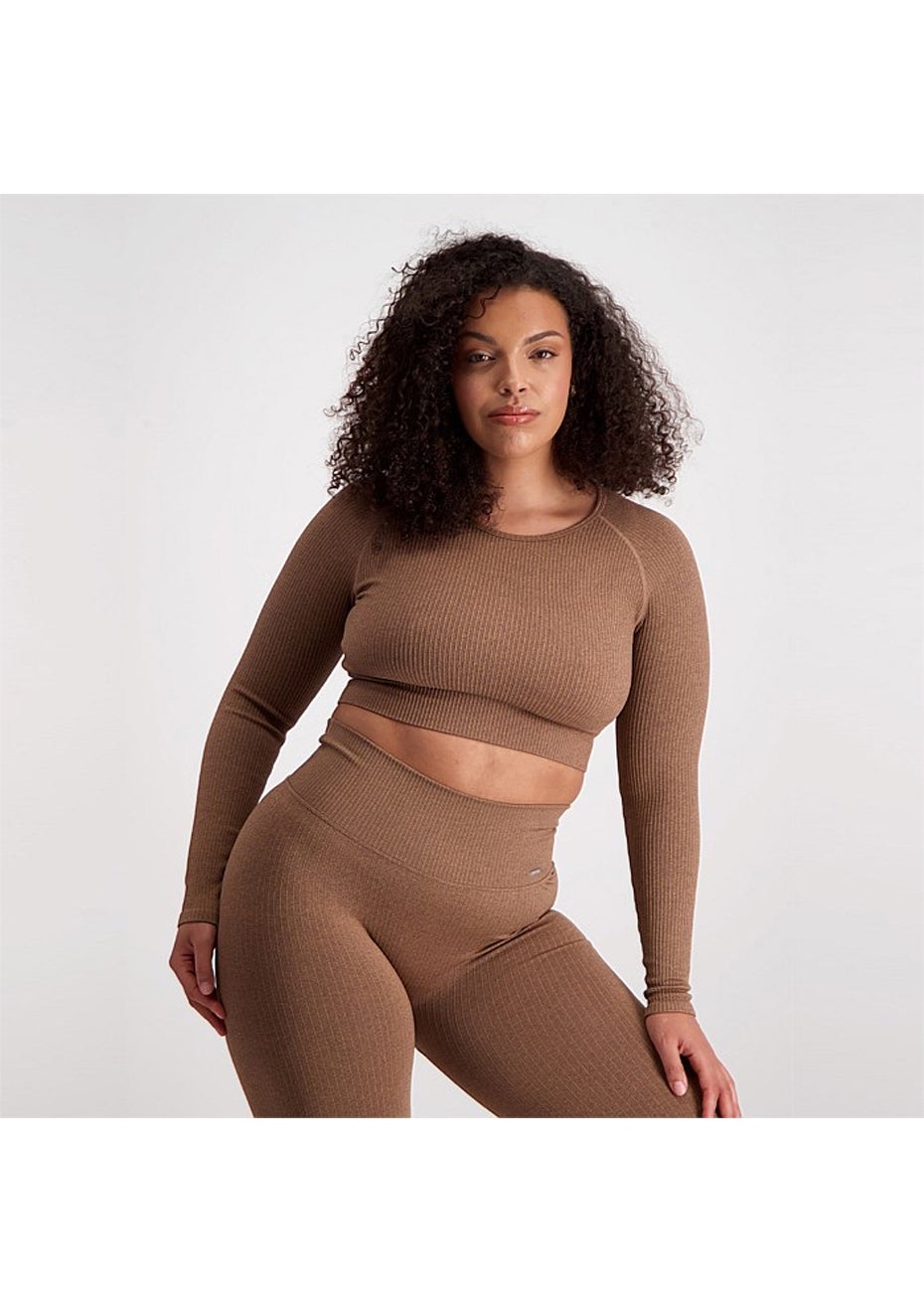 Aim'n - Bronze Ribbed Seamless Crop Long Sleeve - Bronze