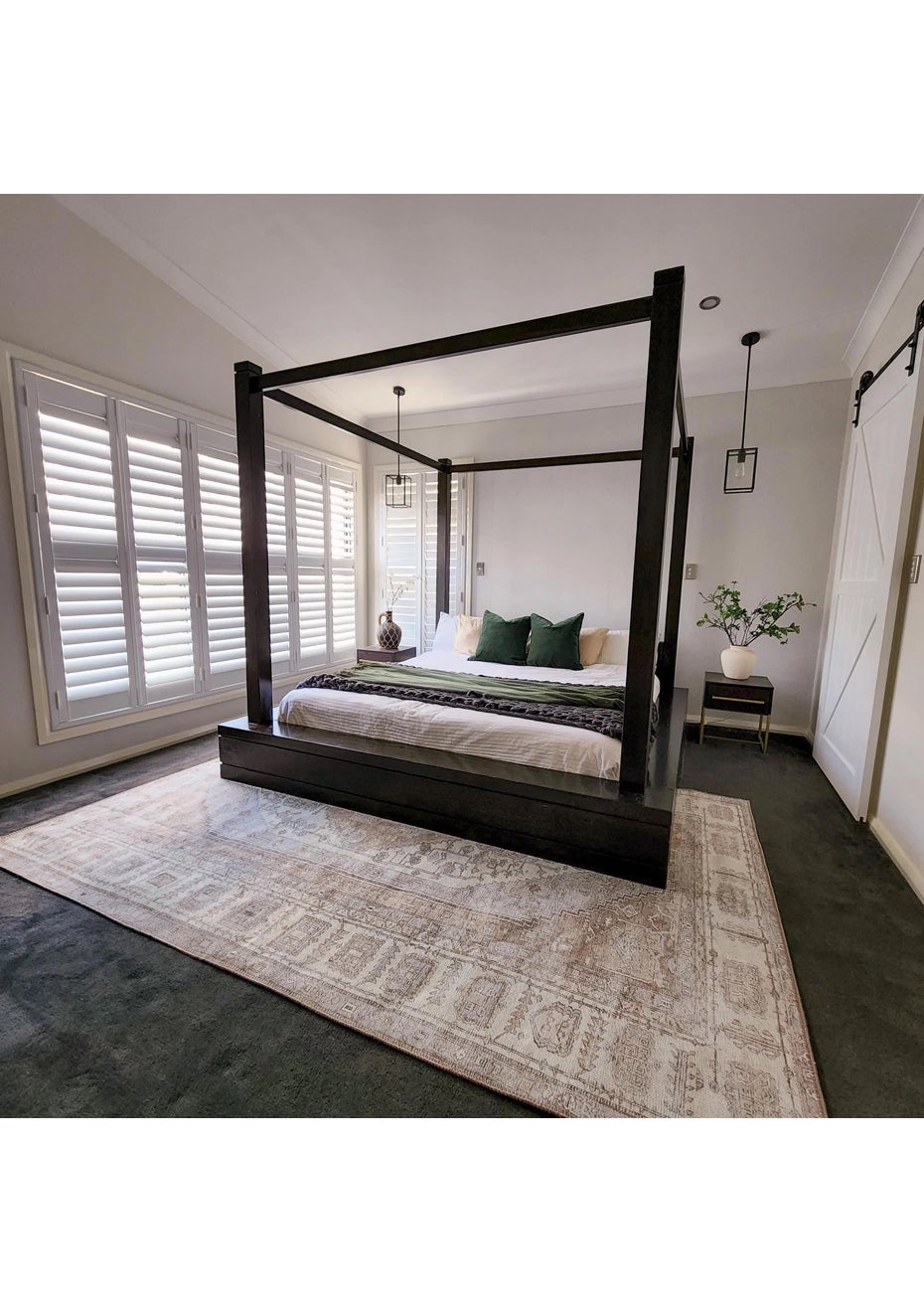 Aneesa Beige and Cream Traditional Distressed Washable Rug