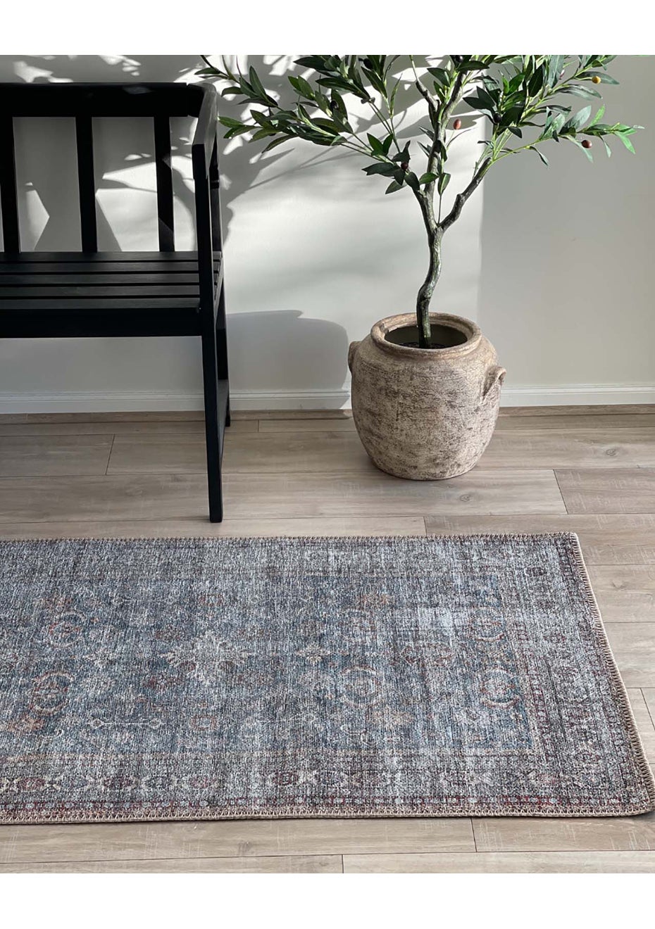 Sorra Blue and Brown Traditional Distressed Washable Runner Rug