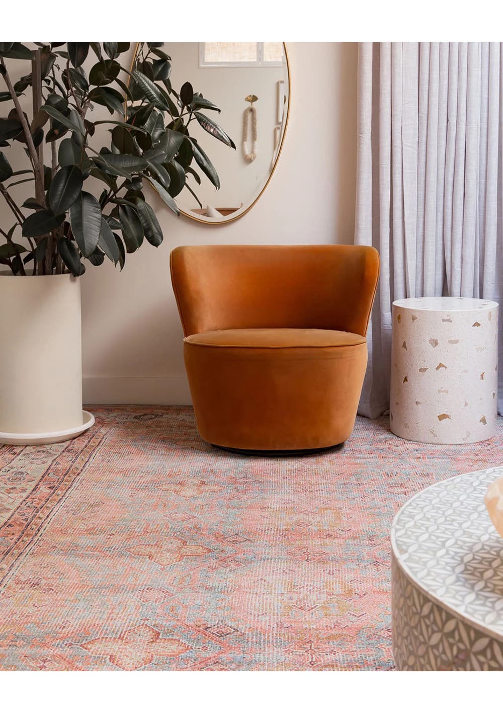 Narem Pink Orange and Blue Traditional Distressed Washable Rug