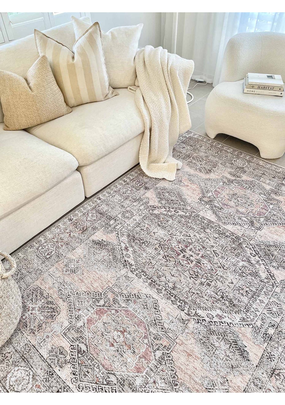 Mindi Grey and Pink Traditional Distressed Washable Rug