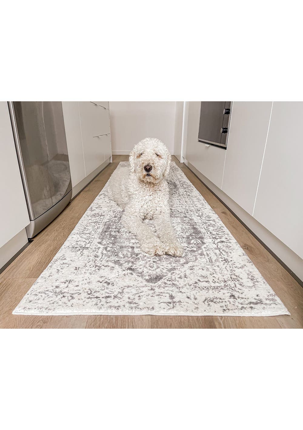Yelina Cream and Grey Distressed Washable Runner Rug