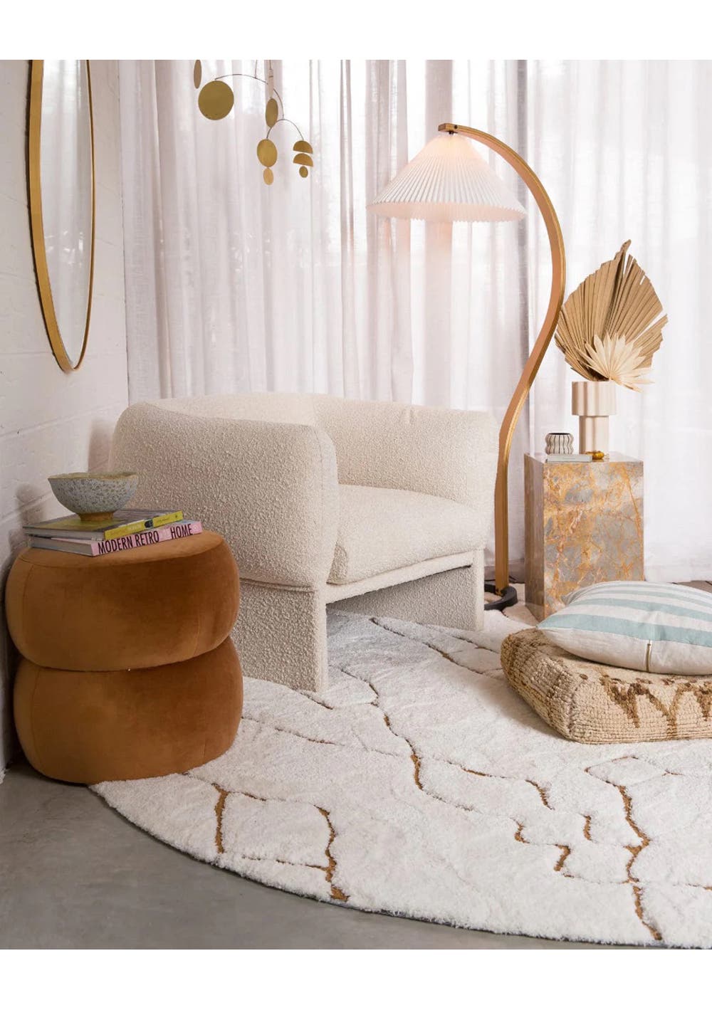 Alayna is a stunning carved shag rug, featuring a blend of cream complemented by an abstract tribal pattern in gold. An iconic design piece, Alayna’s colour palette and unique design make it timeless and versatile. The perfect addition to a modern, tribal, bohemian or vintage style space. Woven in China using modern loom techniques into a 20mm high-low pile of 100% super soft polyester fibres. This hard-wearing fibre is stain-resistant and ideal for high-traffic zones, kids and pet-friendly homes.