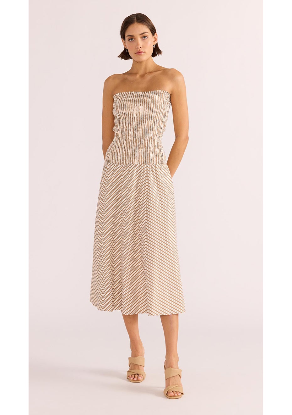 MINKPINK - Artemis Shirred Mini Dress - Tan