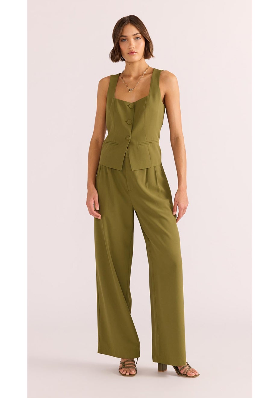 MINKPINK - Nova Tailored Vest - Khaki