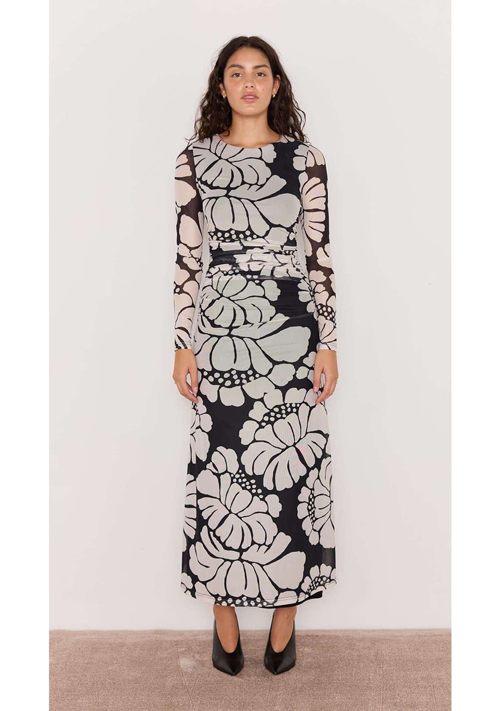 Our cult-favourite mesh dress is back - now in a bold new monochrome. The Persephone Mesh Maxi Dress features the same figure-hugging silhouette you love, with a soft sheer overlay and eye-catching floral print. Effortlessly cool and ultra-flattering, this piece is made for after-dark plans or elevated day-to-night dressing. - Bestselling style, now in classic black and white - Sheer mesh overlay with large-scale floral print - Long sleeves and round neckline for a sleek finish - Midi-maxi length with flattering ruched detailing - Soft stretch mesh that hugs in all the right places - Designed in Sydney, Australia Shell & Lining: 95% Polyester 5% Elastane - Wash separately - Do not bleach/soak/wring or tumble dry - Dry flat in the shade - Cool iron if needed on the reverse side