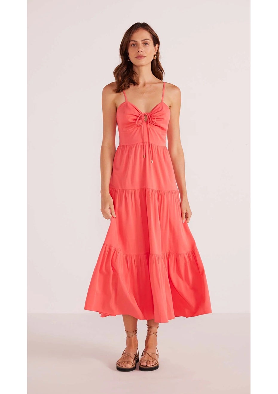 MINKPINK - Sadie Tiered Midi Dress - Coral