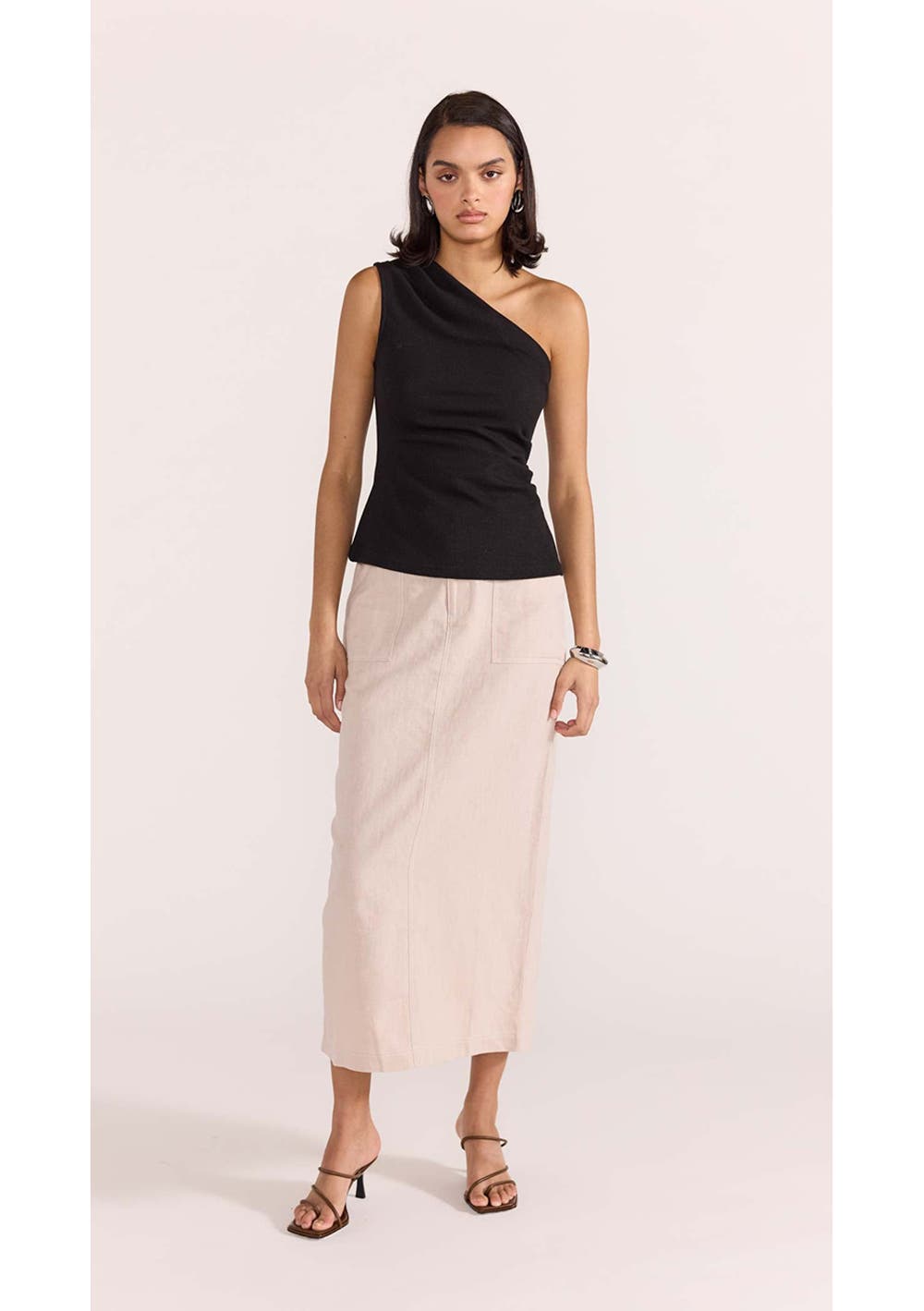 The Dylan One Shoulder Top is your next basic that will help get you through the season in style. Featuring subtle detailing adding that extra dimension to your look to take it from basic to intricate.Style with our Enna Maxi Skirt with heels, layered jewellery and a mini bag to complete your next work to wine look. - One shoulder - Regular length - Slight stretch fabrication - Ruched on side seam - Designed in Sydney, Australia