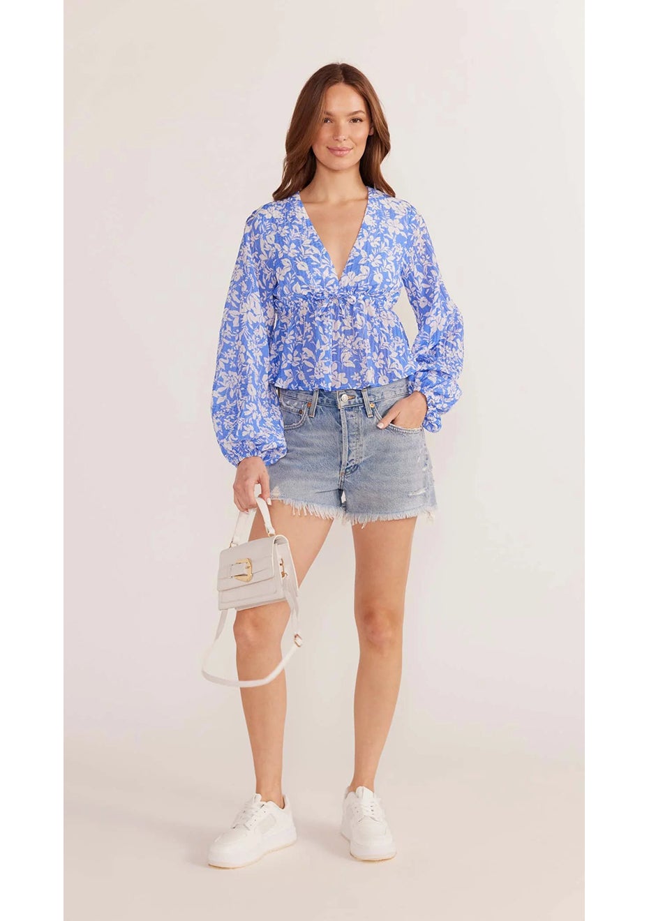 MINKPINK - Waverly Drawstring Blouse - Blue White Floral