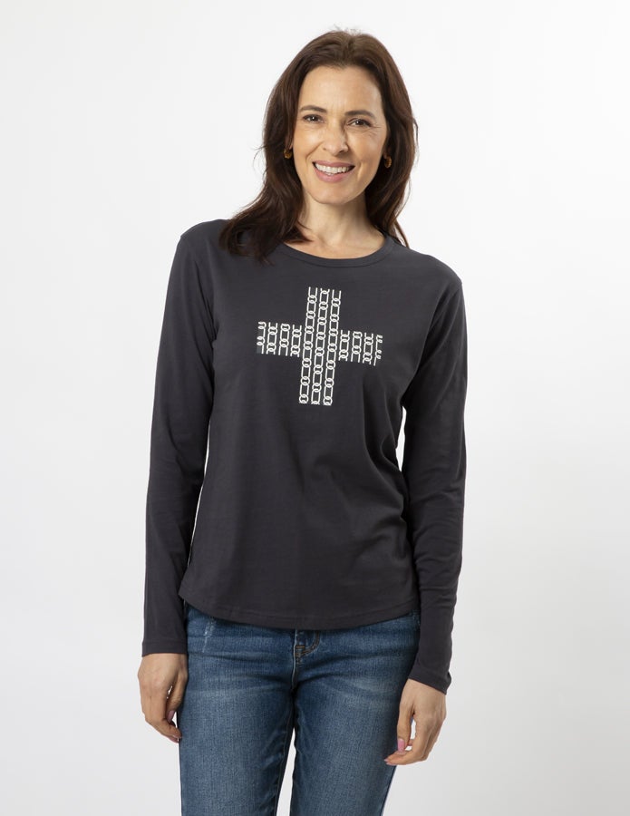 Stella + Gemma - Longsleeve Tee Charcoal Chain Cross