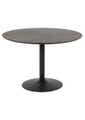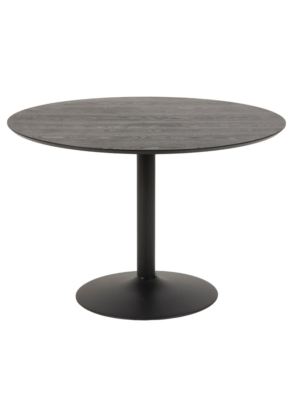 Dining table with a modern and minimalistic look. Thanks to its round shape, this table is a perfect addition to less spacious dining areas as it saves space. The carefully selected materials make this dining table easy to maintain, and the wide trumpet metal base ensures high stability of the table.