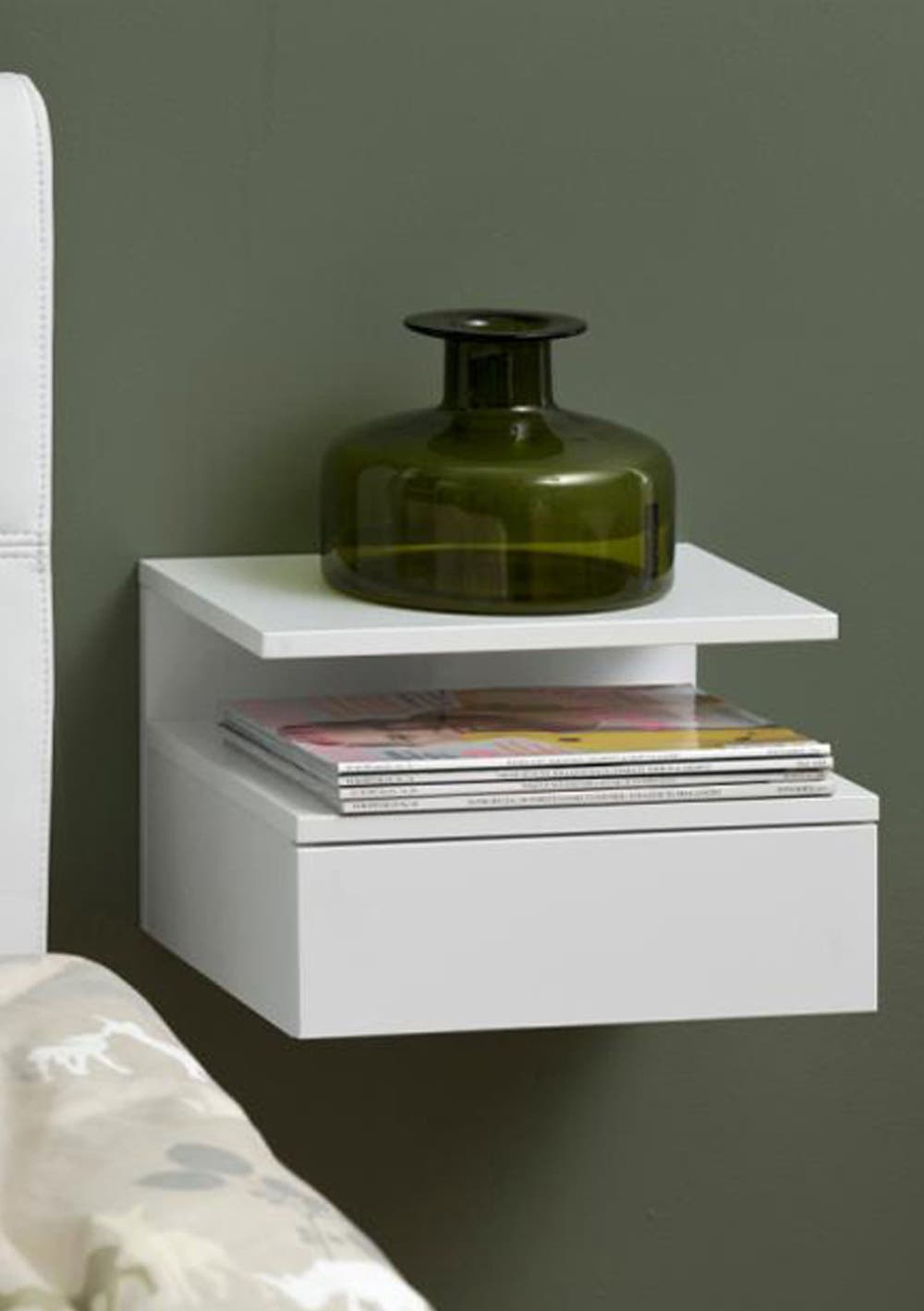 Save space and create an optical illusion at once with this floating bed side table. It is an ideal solution for even the tiniest bedrooms. Featuring a drawer big enough to keep everything you need safe within a reach. Besides that, the clean lines and contemporary design make this bedside table a keeper. Quite hard to resist, don't you think?