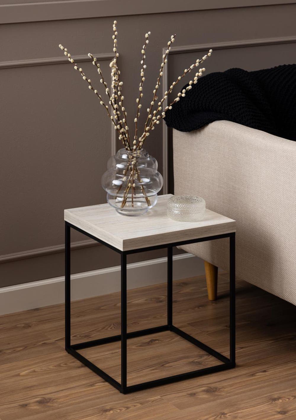 The first thing you will probably notice about this coffee table is the expressive tabletop stemming from the square steel base. It is thick and adorned with a travertine look, which softens the robust top with its subtle appearance. So, if you are looking for an accent piece that should set a calm atmosphere in the space, then this is the one.