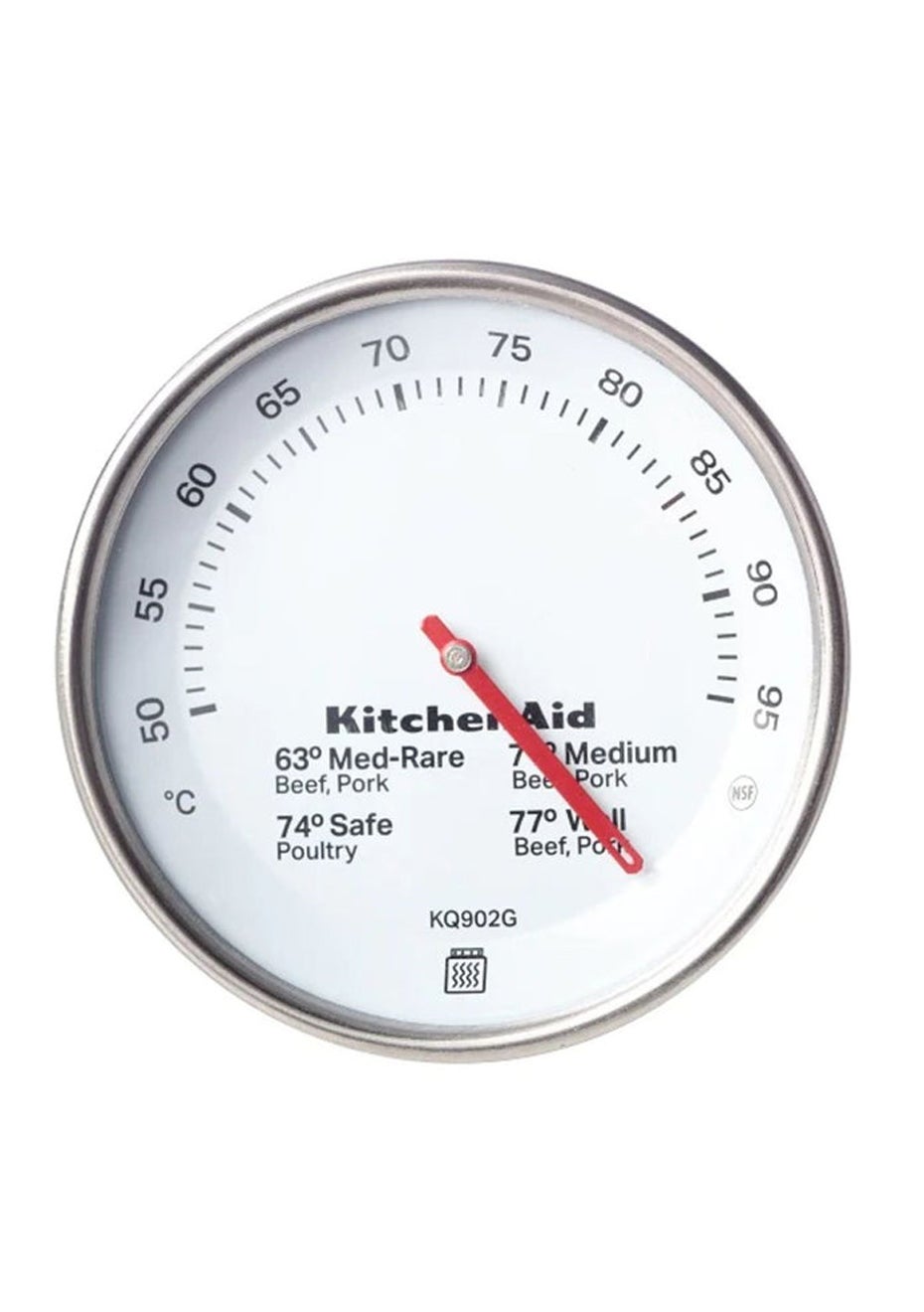 This KitchenAid Leave-In Meat Thermometer is the only kitchen measurement tool that will help cook meat to the correct temperature and give peace of mind about food safety. * Stainless steel and tempered glass * Temperature range: 50 - 95℃ * hermometer will be hot after use, use potholders or oven mitts when handling hot thermometer. * Hand wash only. Do not submerge in water.
