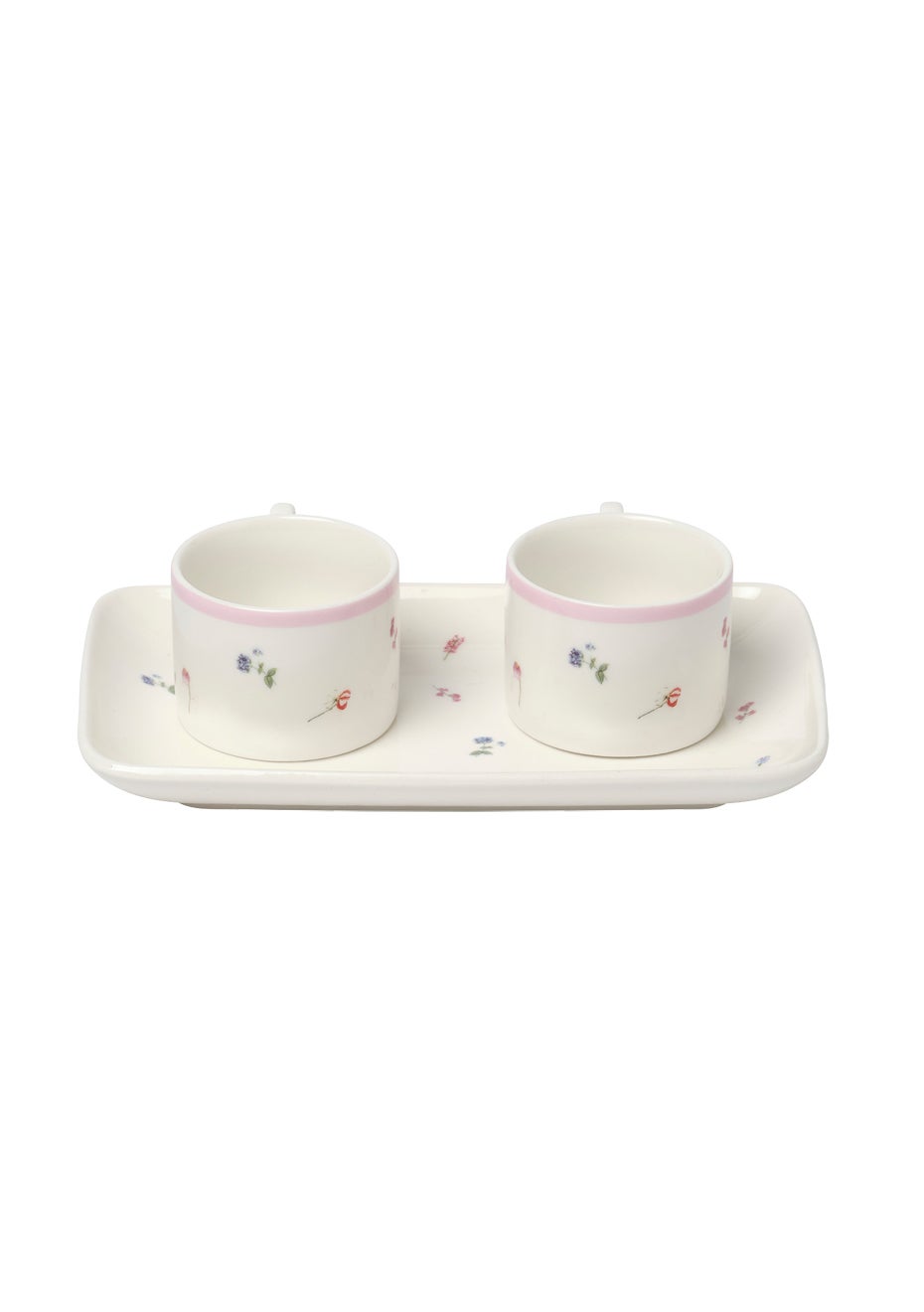 A great little set for yourself or the perfect little gift, two espresso cups on a small tray.