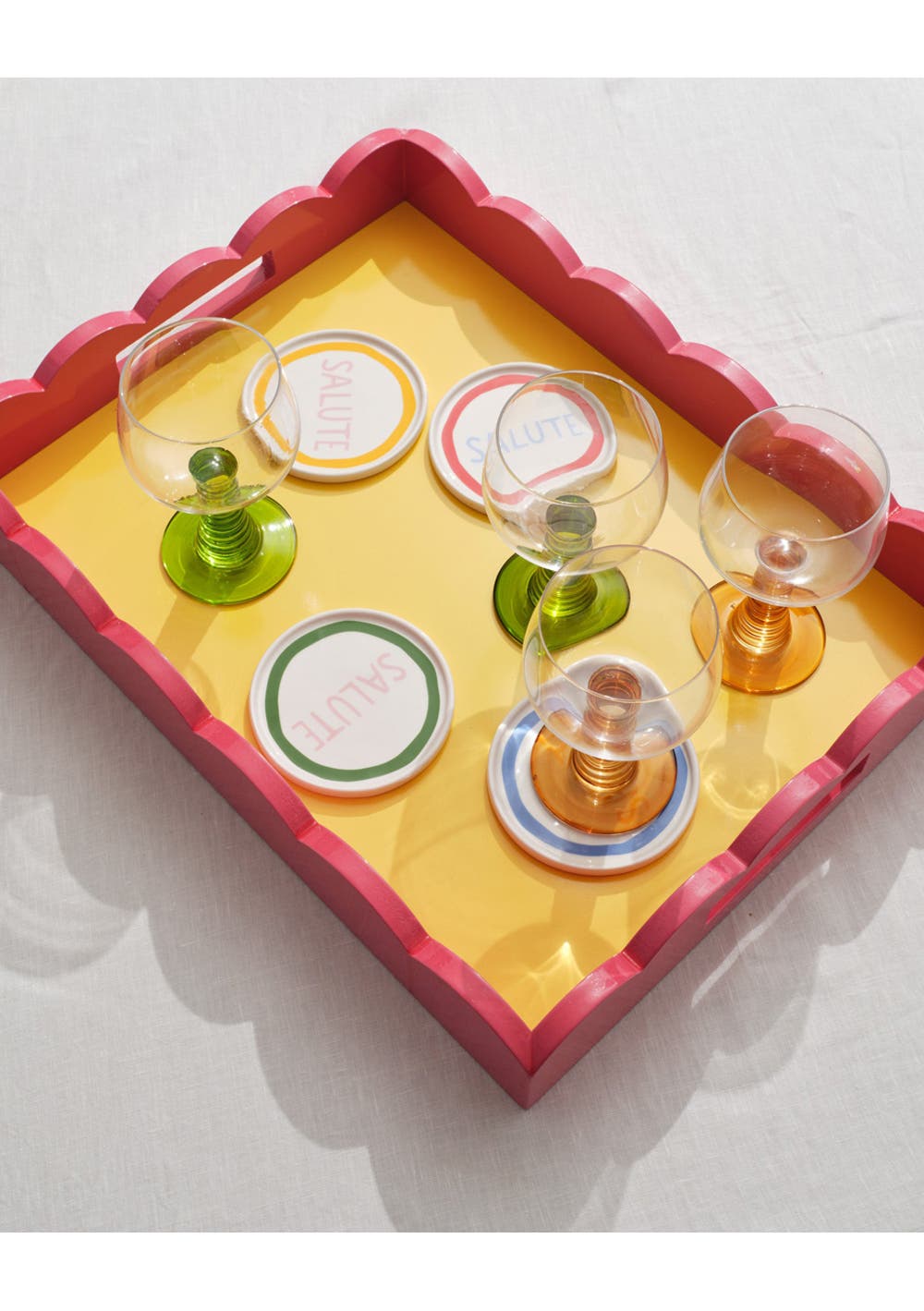 Large Rectangular Yellow and Pink Scalloped TrayCLEARANCE