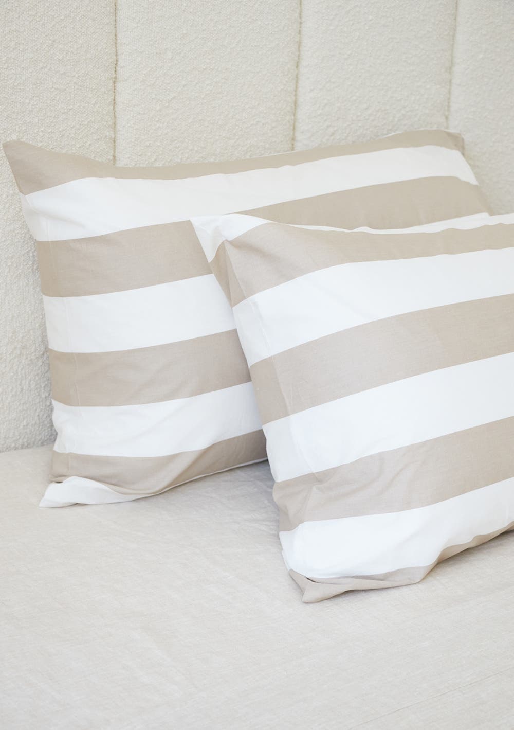 George Collective - 100% Stonewashed Cotton Pillowcase Pair - Natural Wide Stripe